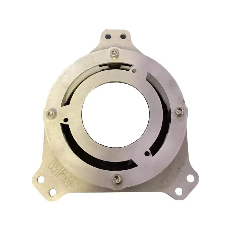The pump has a plate fixed to it using the OEM bolts and holes (provisions for extra fixings if you want)
